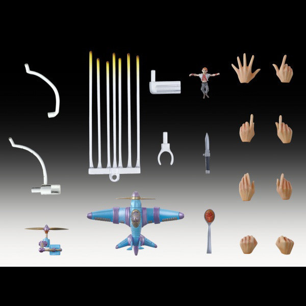 オプションパーツは表情違いの頭部パーツやハンドパーツの他、エアロスミスのレーダーや「トーキング・ヘッド」の乗ったスプーンなど、ナランチャの印象的な各戦闘シーンを再現できるマニアックなパーツが豊富に付属する盛りだくさんのセットです!!